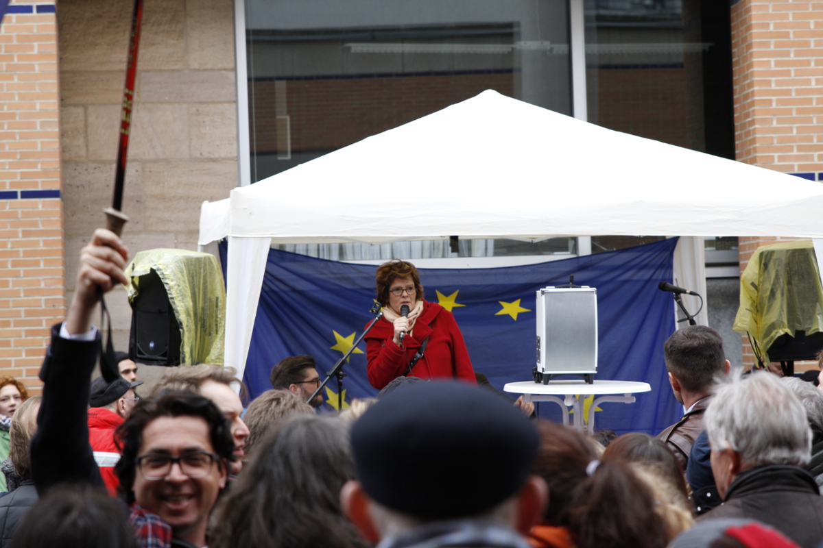 Heute um 14:00 war es wieder soweit. Die zweite pulseofeurope Kundgebung in Nuernberg in der Strasse der Menschenrechte in der Naehe des Kornmarkts.